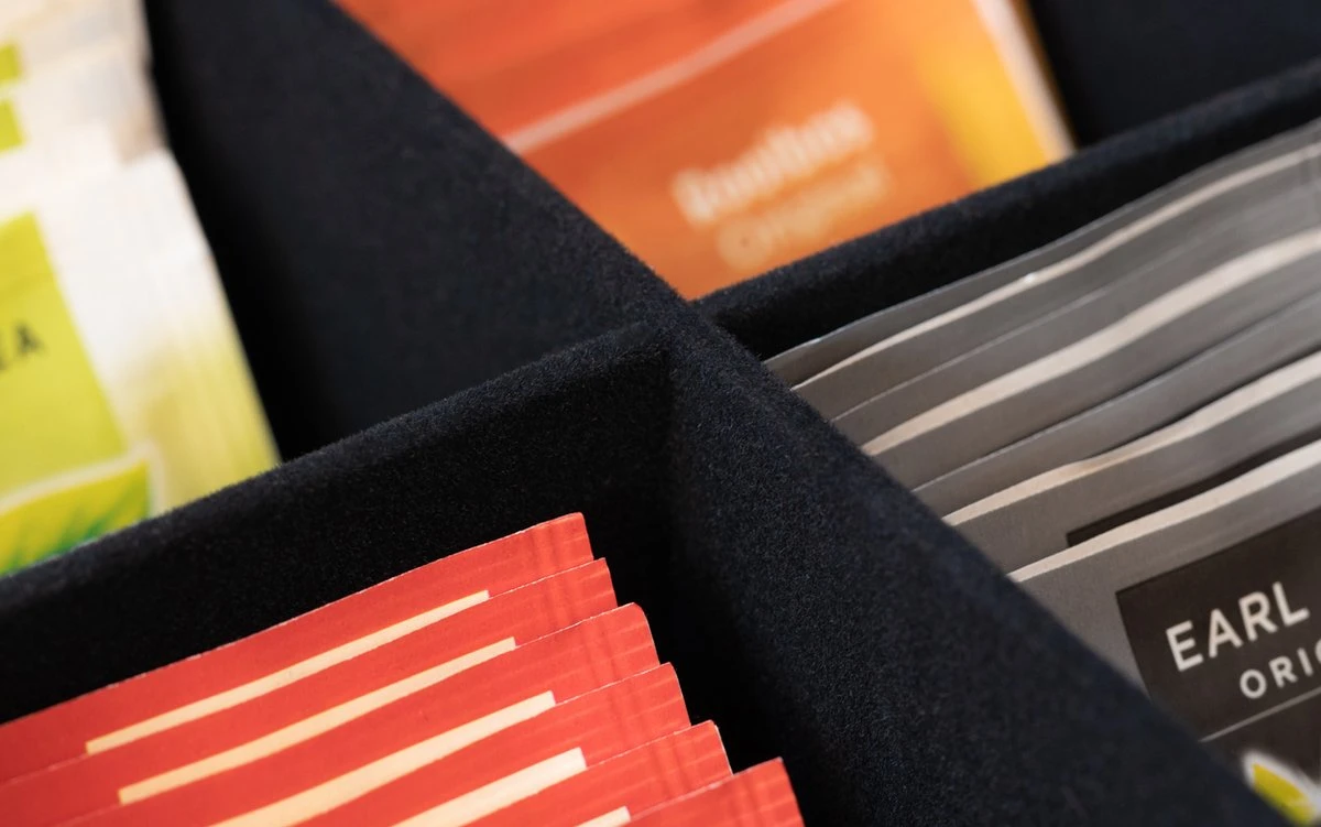 Hou al je theezakjes overzichtelijk bij elkaar met deze Theedoos Zwart 6-vaks – met Fluweel – 24 x 16 cm! De theedoos is gemaakt van hout en heeft 6 vakjes. Ook heeft hij een doorzichtige deksel, zodat je gemakkelijk alle theesmaken kan zien. De theedoos heeft een afmeting van 24 x 16 cm en de binnenkant is van fluweel.