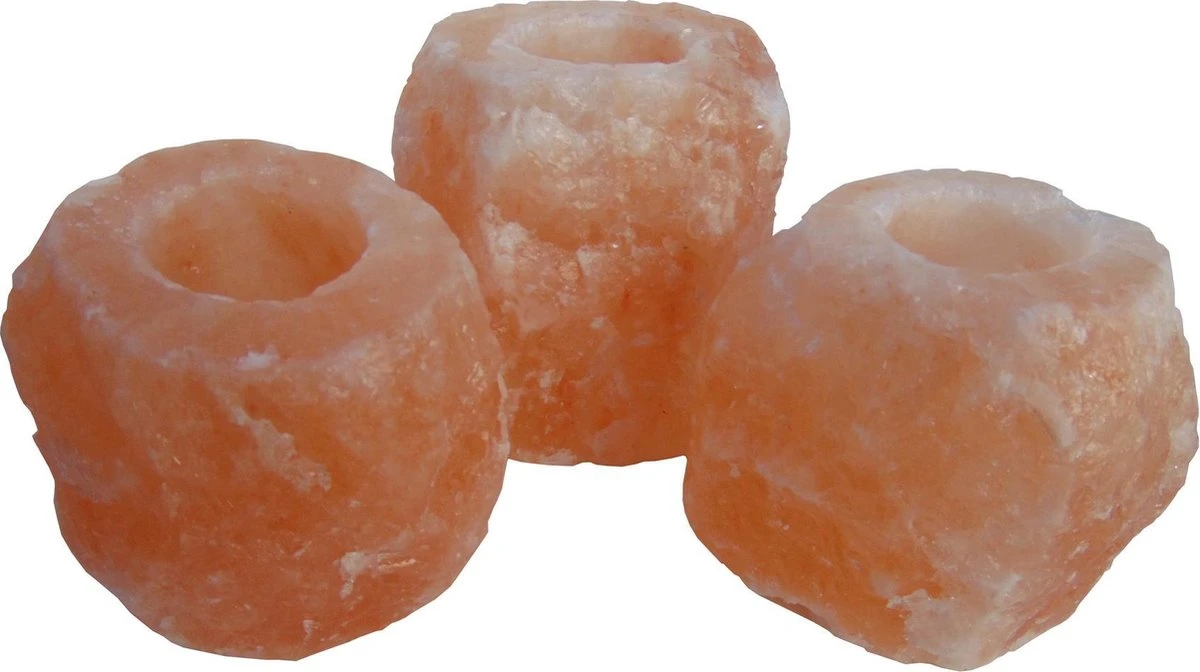 Met de hand gemijnde Himalaya zoutsteen Theelichthouders in natuurlijke vorm. Vervaardigd uit gekristalliseerde zoutsteen afkomstig uit het Pakistaanse Himalaya gebergte.