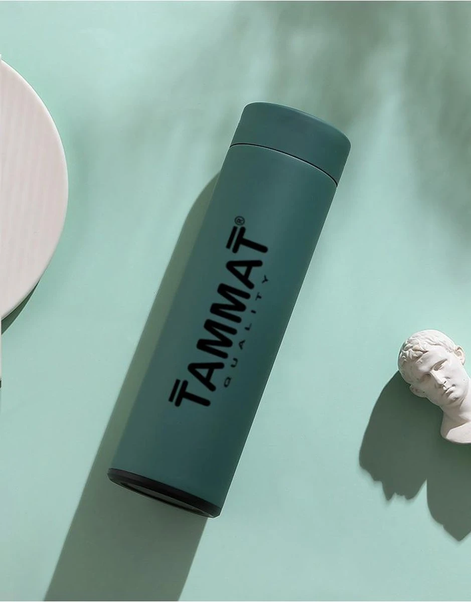 Deze slimme Thermosfles van 500ML met temperatuur display is nieuw en trendy! Ons nieuwste TammaT Thermosfles heeft een stijlvol design met rubber coating en past perfect bij al je accessoires. Door de slimme temperatuur display, weet je altijd hoe heet en/of koud je drinken is, dat zorgt ervoor dat je nooit meer je mond of tong verbrand. Door roestvrij metaal, rubber coating en dubbelwandige vacuüm, maakt deze slimme rvs drinkfles robuust en duurzaam.